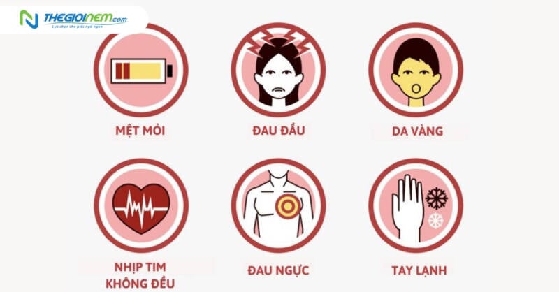 • Khó thở: khi máu không cung cấp đủ oxy cho cơ thể, bạn có thể cảm thấy khó thở hoặc ngắn hơi.