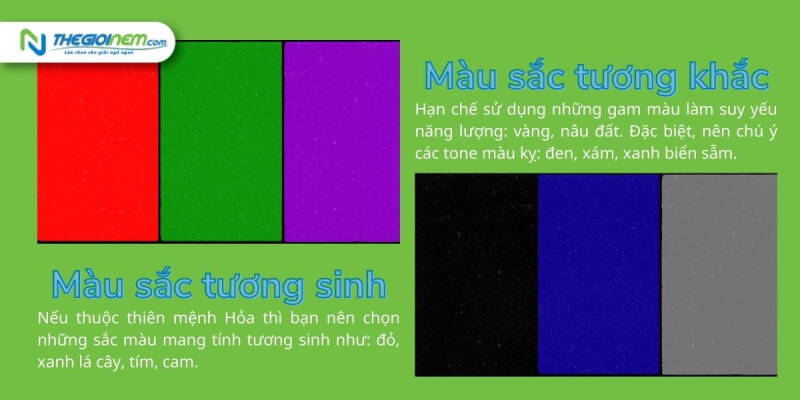 Người mệnh Hoả hợp với màu gì? Cùng Thế Giới Nệm tìm hiểu trong bài viết dưới đây để chọn màu trang phục, phụ kiện phòng ngủ, đồ dùng trang trí để gặp may mắn trong công danh, sự nghiệp và cuộc sống. Quy luật màu sắc trong ngũ hành đóng vai trò rất quan trọng cho người mệnh Hoả.